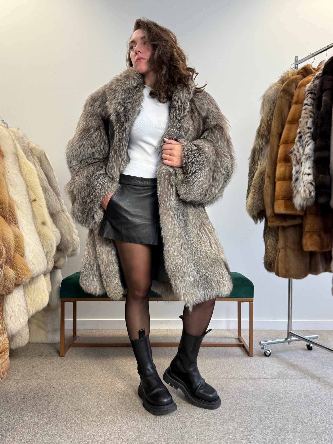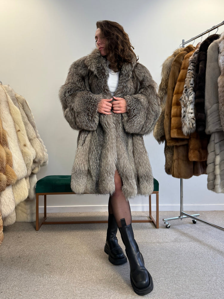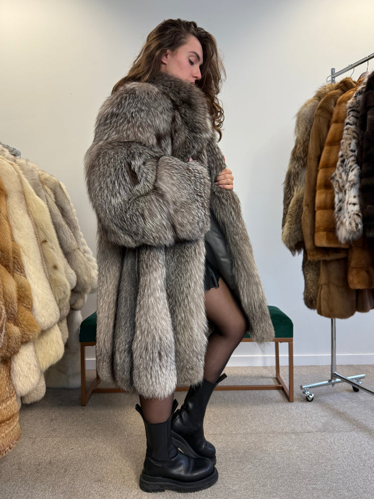 Long Swinger Grey Fox Fur Coat - XL Size, Premium Quality Fur Coat, Excellent Condition, Luxurious & Stylish Women's Fur Coat, Real Fox Fur