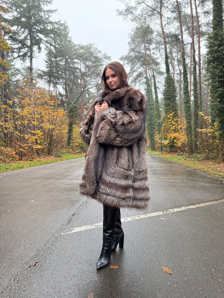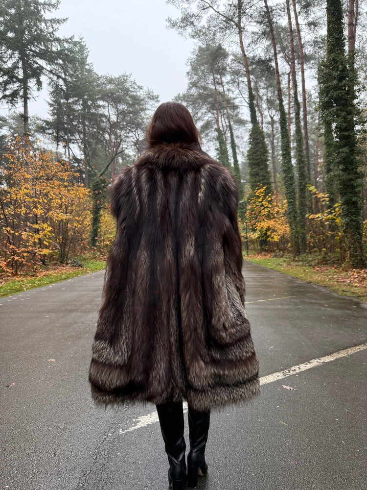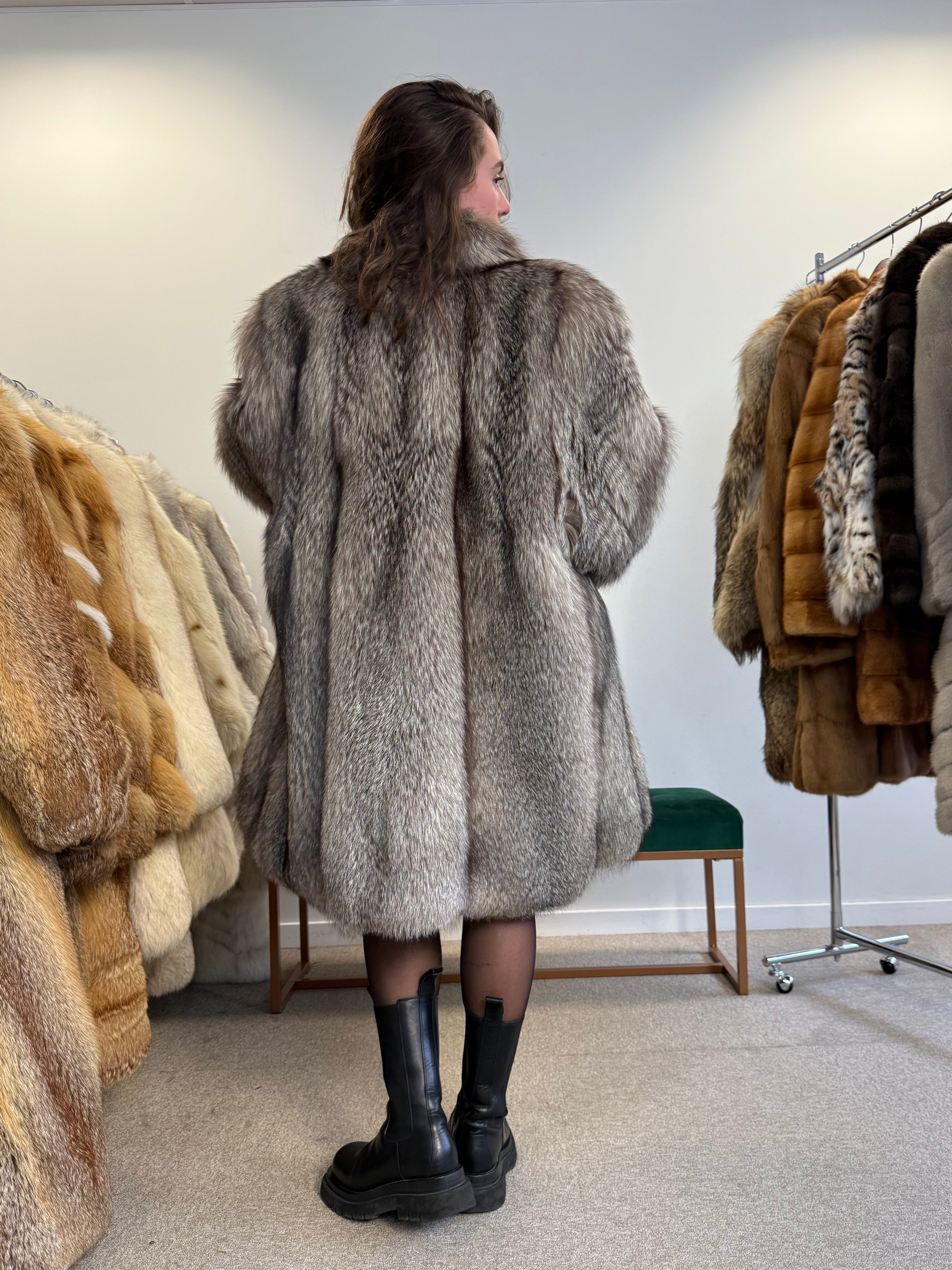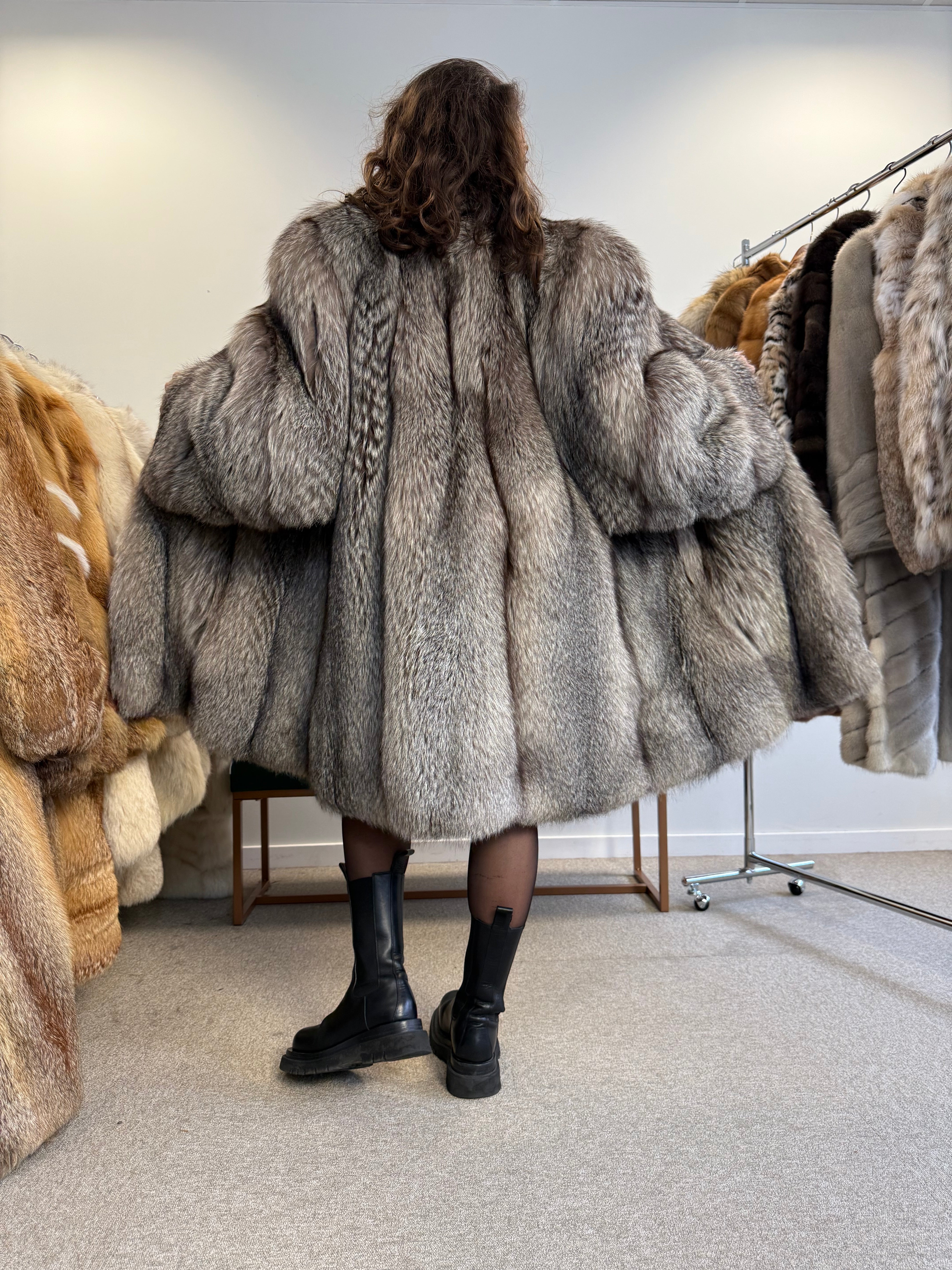 Long Swinger Grey Fox Fur Coat - XL Size, Premium Quality Fur Coat, Excellent Condition, Luxurious & Stylish Women's Fur Coat, Real Fox Fur