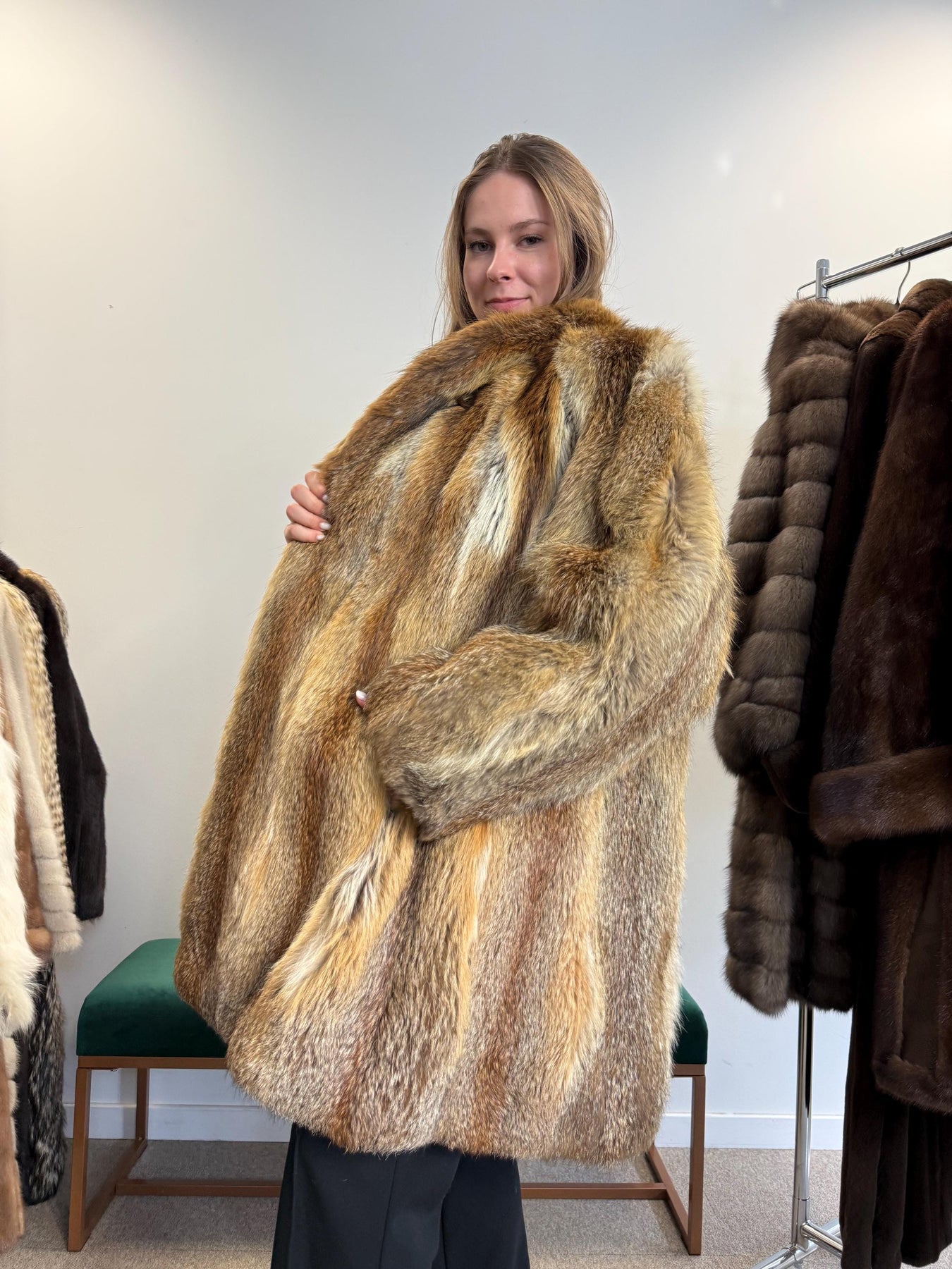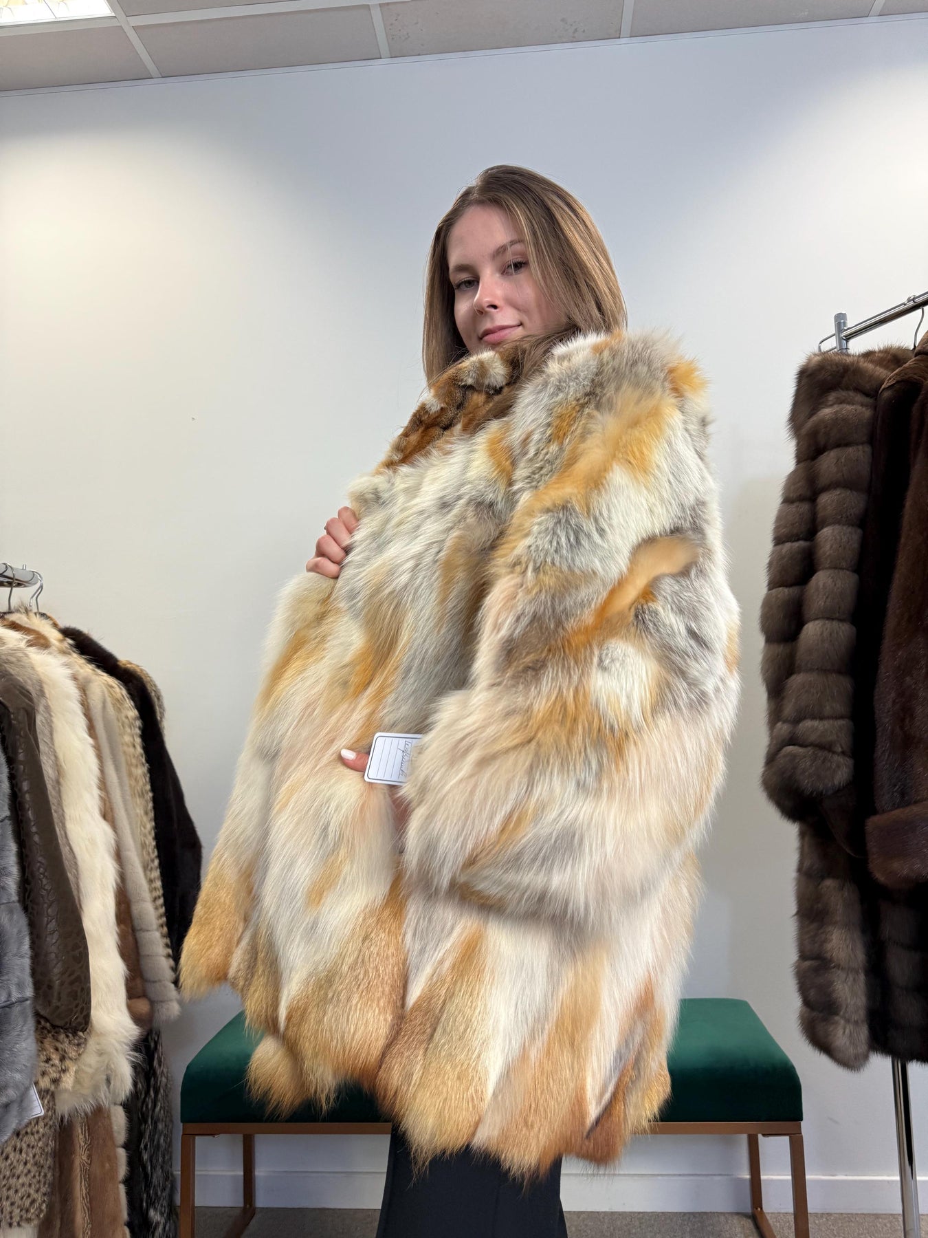 Canadian Red Fox Coat, Real Fur, Women’s XL Size, Timeless Luxury