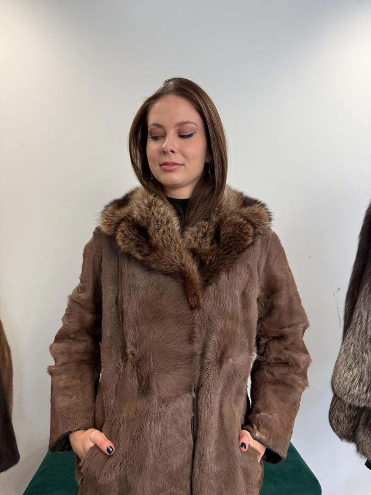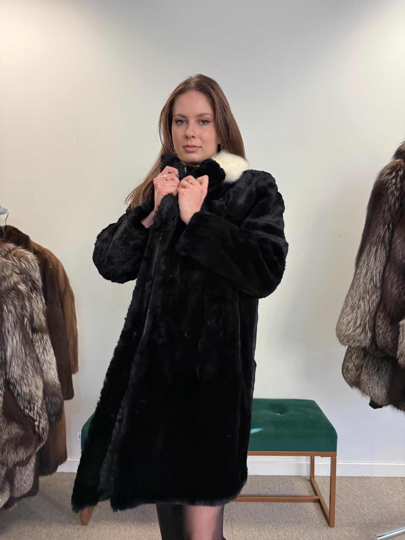 Sheared Rabbit Fur Coat, Mink Fur Collar, Medium Size, Black Rabbit Fur Coat, Thick Fur Coat, Soft Fur Coat, Vintage Fur Coat, Women's Coat