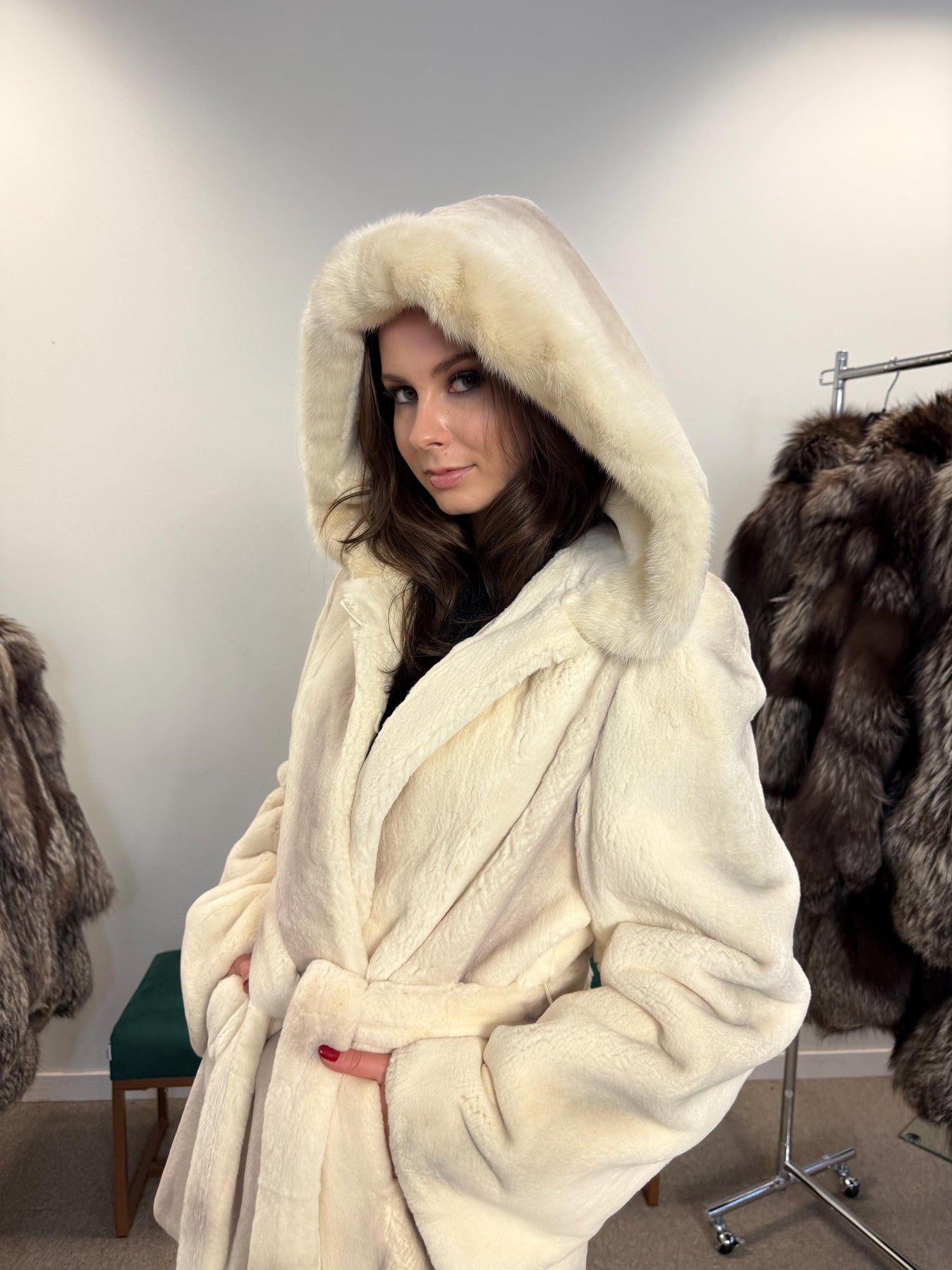 Sheared Rex Rabbit with Mink Fur Coat, Medium Size, White Rabbit Fur Coat, White Mink Fur Coat, Vintage Fur Coat, Women's Coat, New Fur Coat