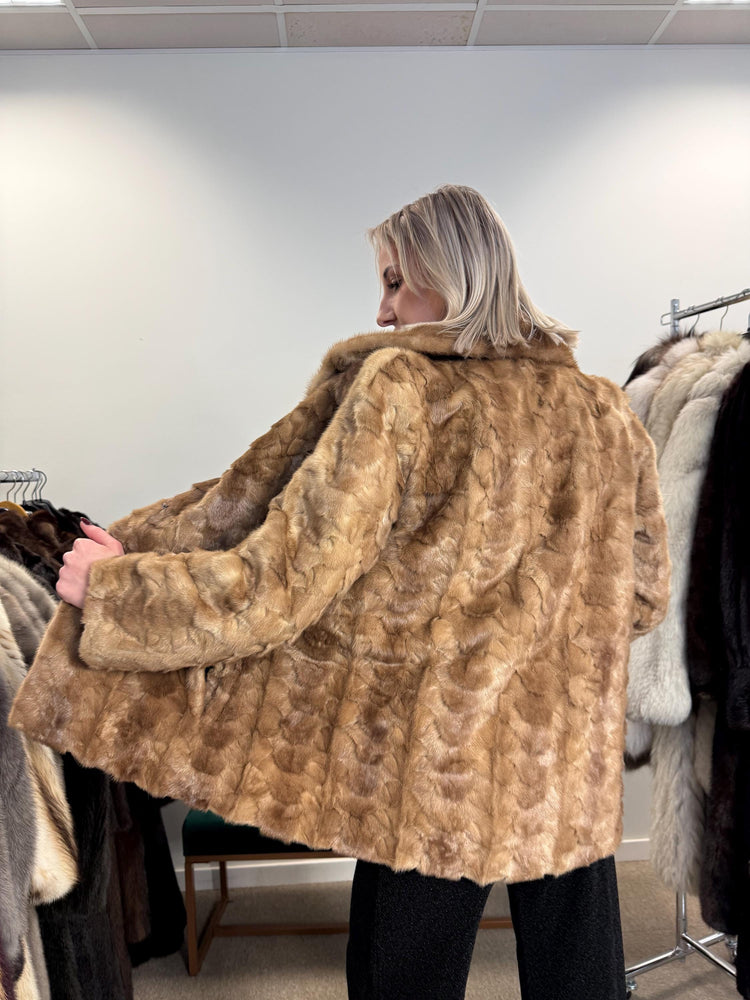 Golden Mink Fur Jacket, M/L Size, Soft and Thick Mink Fur, Luxurious and Elegant Outerwear, Genuine Mink Fur, Classic Fashion Style, Vintage
