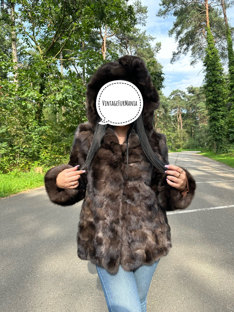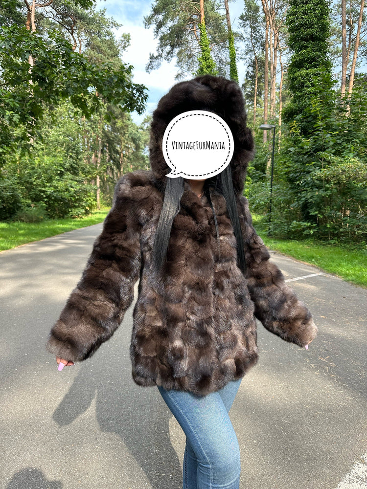 Genuine Sable Fur Jacket with Hoodie, M/L Size, Soft Eye-Catching, Rich Expensive Fur Jacket, Sable Fur for Women, Premium Fur, Luxurious