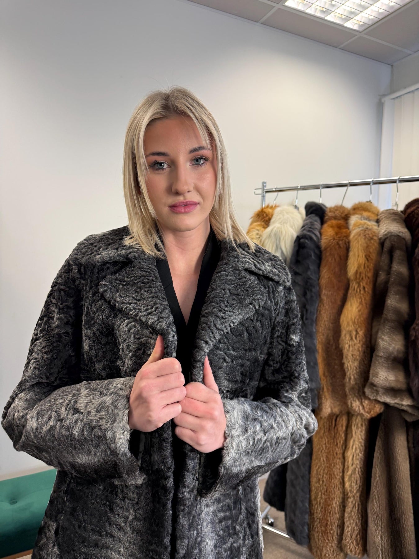 Swakara Astrakhan Fur Coat, Medium fur coat, swakara coat, fur coat, real fur coat, vintage fur coat, fur coats women, black fur coat, rare