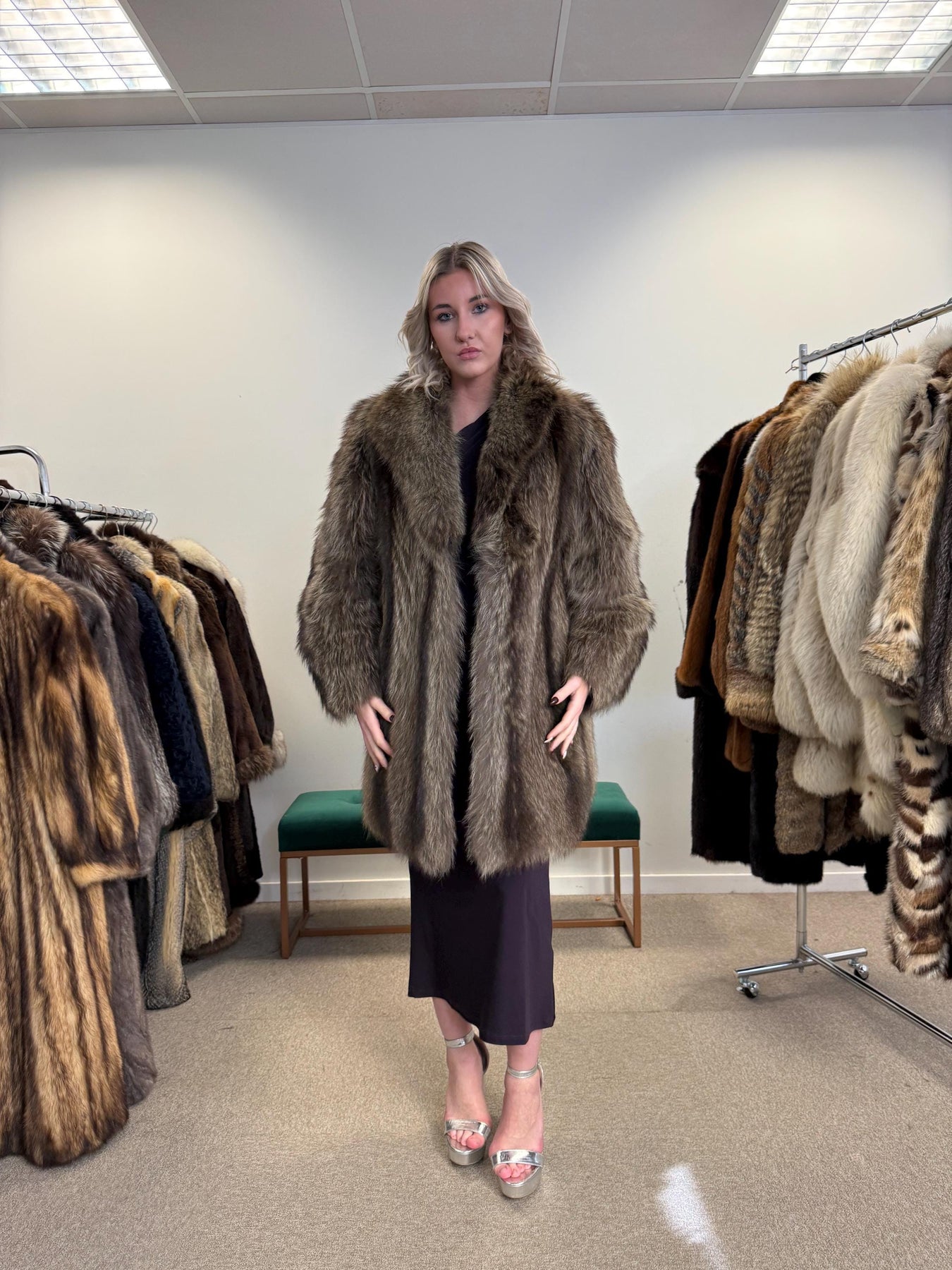 Vintage Raccoon Fur Coat, Full-Length, Brown Silver, Medium Size