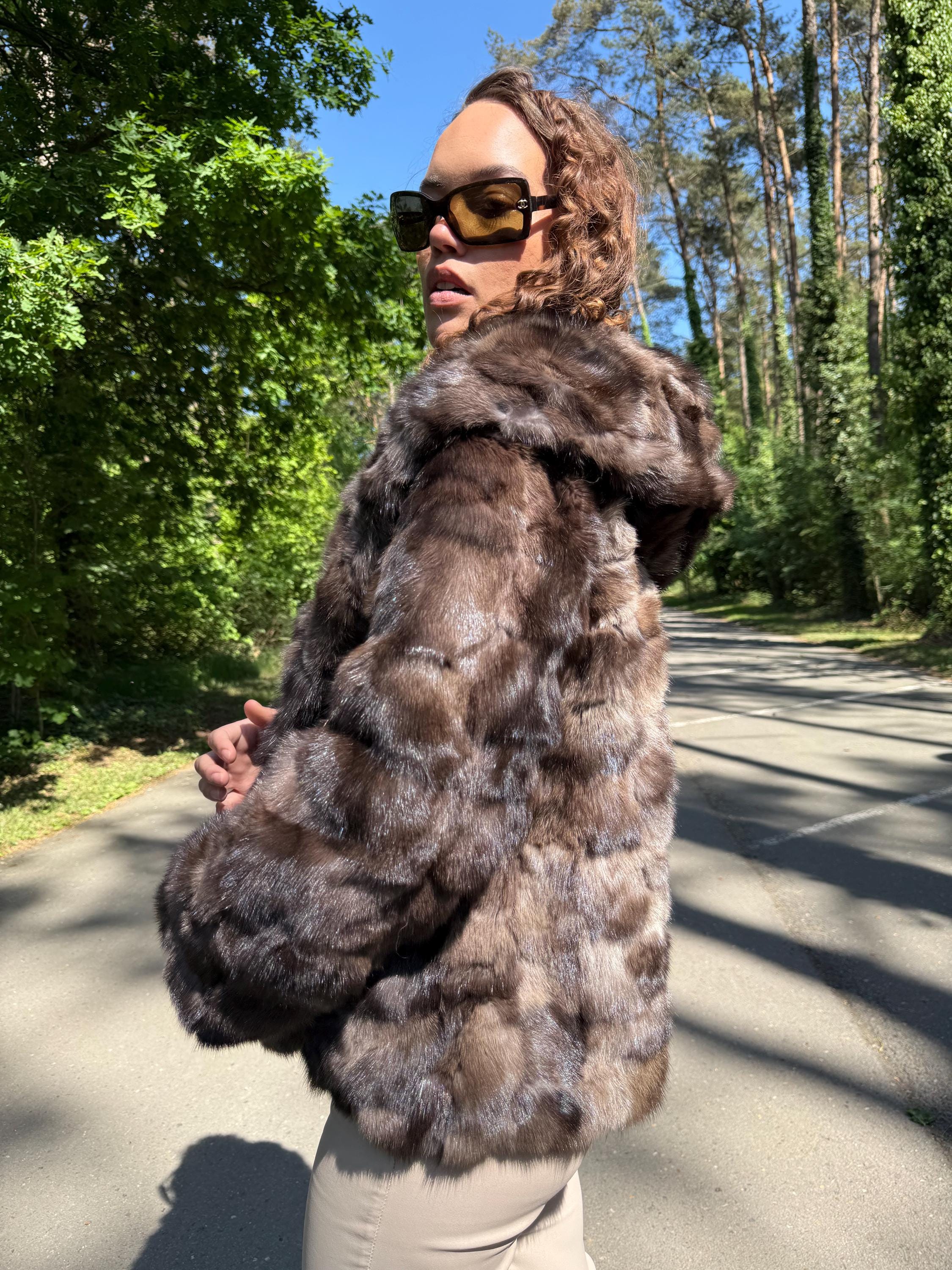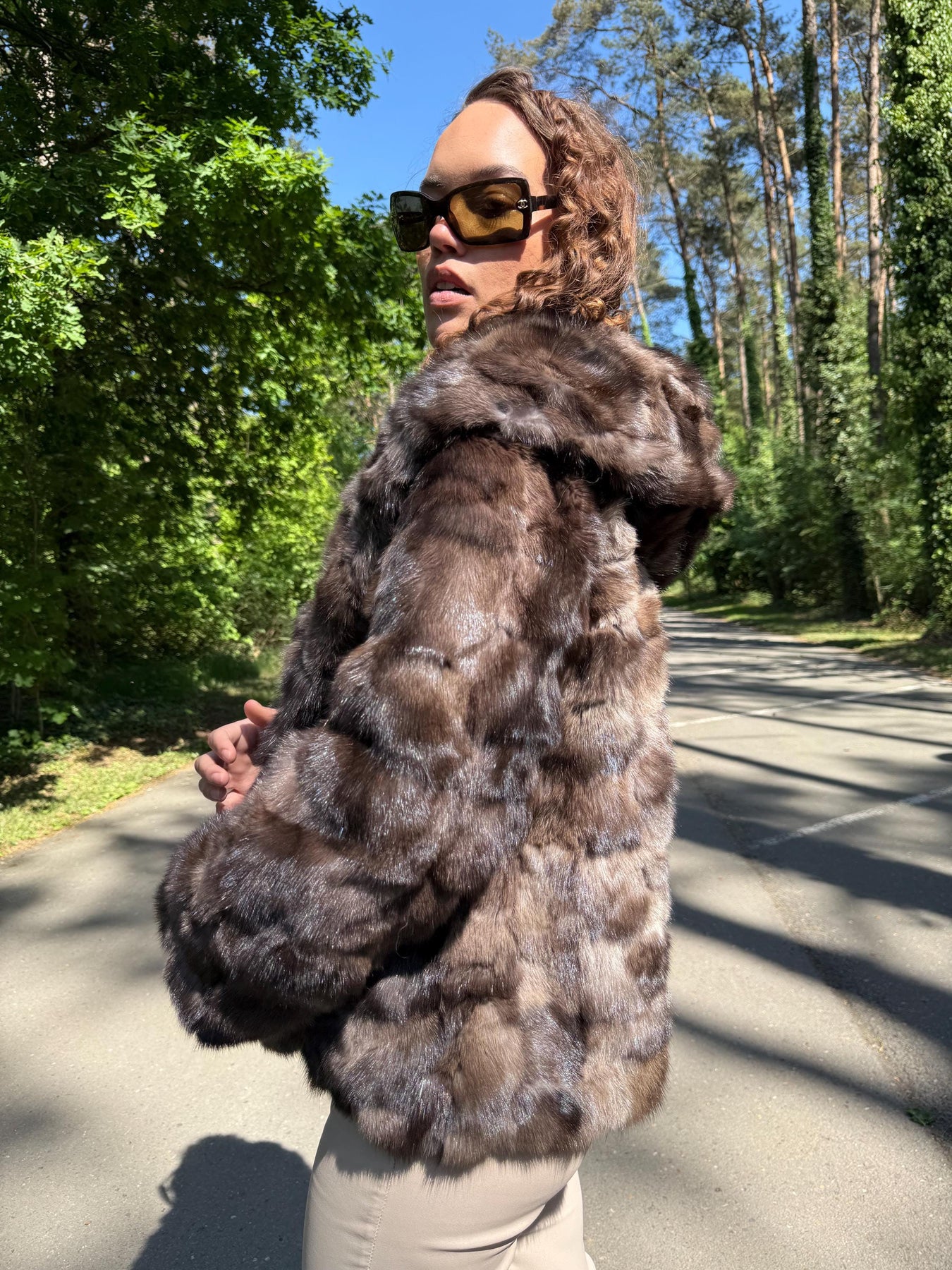 Genuine Sable Fur Jacket with Hoodie, M/L Size, Soft Eye-Catching, Rich Expensive Fur Jacket, Sable Fur for Women, Premium Fur, Luxurious